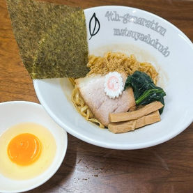上質な豚脂に鶏出汁と特製醤油を濃いめに混ぜ合わせたライトジャンクな麺にぷりんせす・エッグをつけ麺のように付けてお召し上がり下さい、背徳感の少ない食べやすい逸杯。